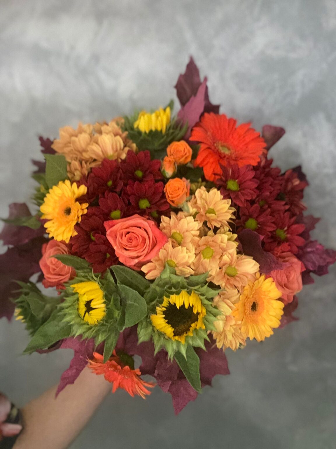 Bouquet floreale autunnale, ideale per qualsiasi occasione, realizzato con fiori freschi di stagione.