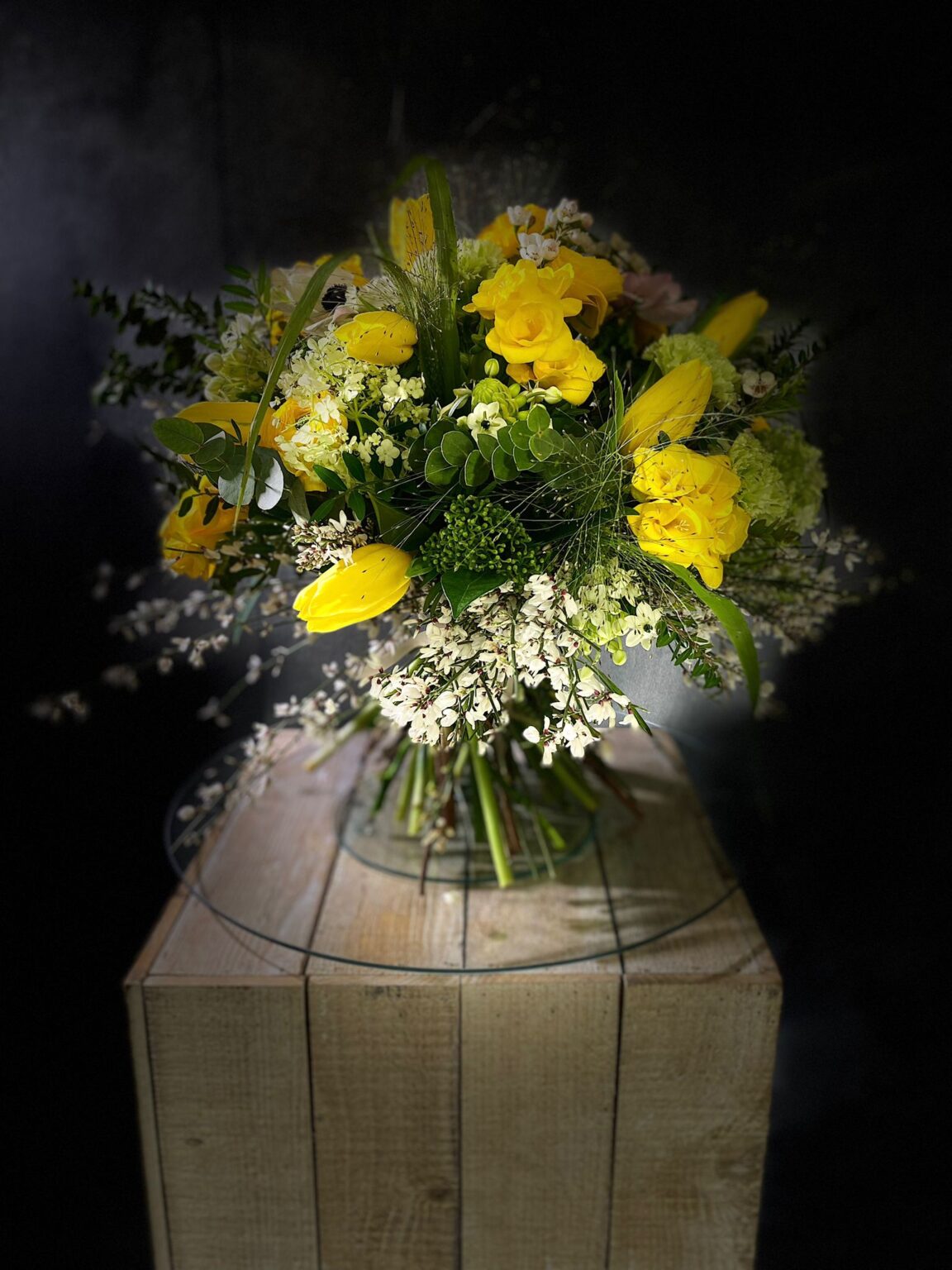 Bouquet di fiori misti primaverili , prevalenza colore giallo (solo in stagione, scrivere o chiamare per chiedere la disponibilità).