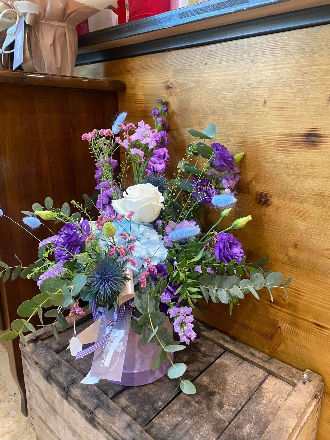 Elegante cappelliera flower box ideale per qualsiasi occasione, comoda e pratica, realizzata con fiori freschi di giornata. Nel campo note, scrivi le Tue richieste e noi cercheremo di soddisfarti in base alla disponibilità del giorno.